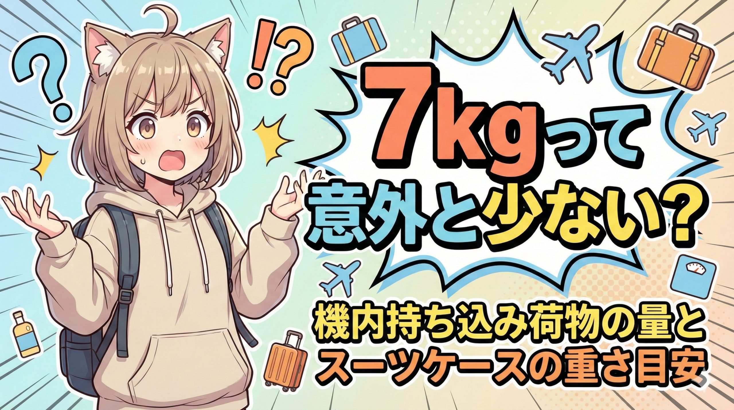 LCCを使って旅行するとき、最初に気になるのが「7kg」という数字ですよね。数字だけ見てもなかなかイメージしにくいかもしれません。ここでは、7kgがどれくらいの重さなのか、そしてどんなルールがあるのかを見ていきましょう。
