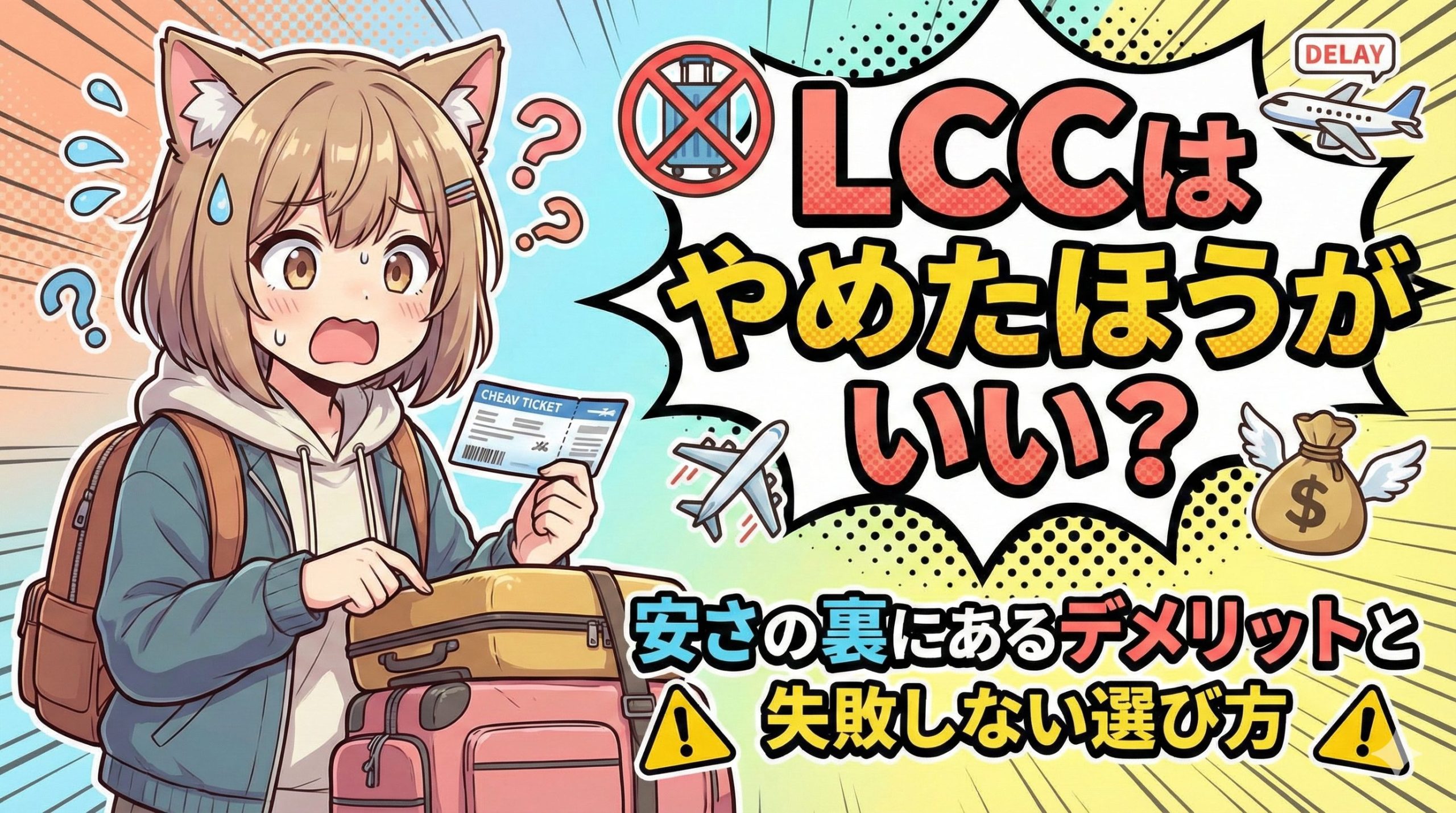 確かにLCCは運賃が安いですが、その分いくつかの制約があります。ただ、使い方を間違えなければ賢く節約できるのも事実です。大切なのは、自分の旅のスタイルに合っているかどうかを見極めることです。この記事では、LCCのデメリットと失敗しない選び方をわかりやすく紹介します。